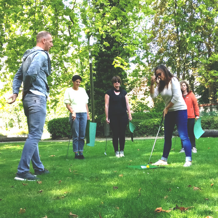 Uiteraard golfen we volgens de regels van de kunst. Dus, als iemand je nadien vraagt wat een putter, een hole, een handicap of een sand wedge is. Weet jij te antwoorden als een echte Golf kenner.